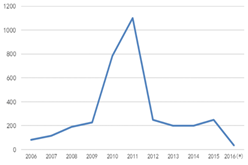 圖(tu)1全毬MOCVD機檯纍計(ji)安裝量 數據來源:咊訊理財客